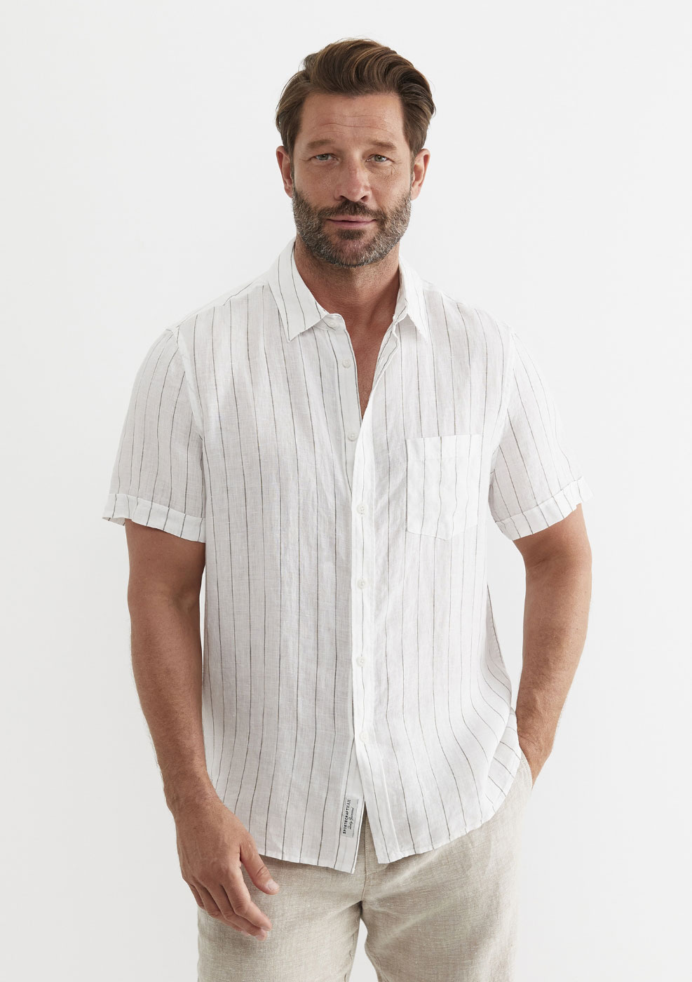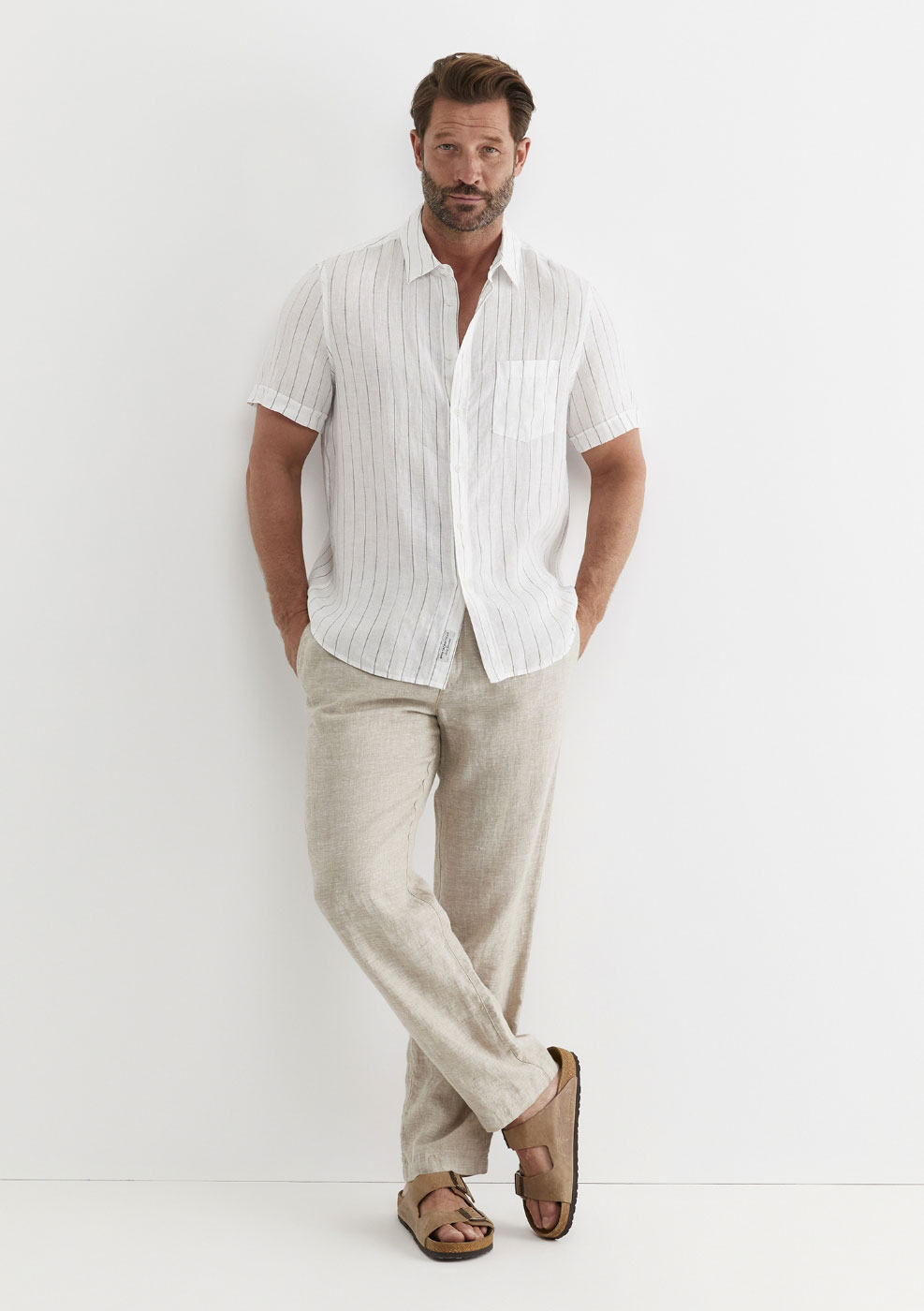 Linen pants in shades of tan or beige are a summer staple. Pair them with a button-down short sleeve shirt for a look that’s both smart and relaxed. Whether you’re attending a casual gathering or heading out for a weekend getaway, this combination strikes the perfect balance between comfort and style.