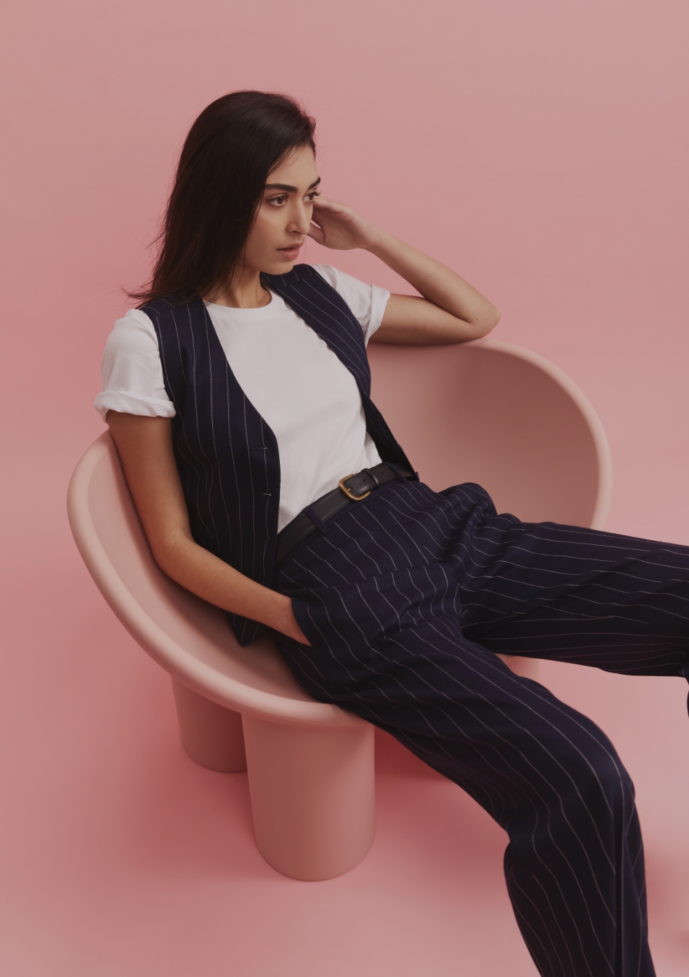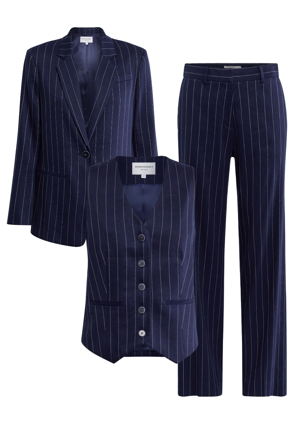 Introducing the Brianne suit, the ultimate power suit of the season. Crafted in a pinstripe linen blend, its versatile design effortlessly transitions from day to night. Available in classic white and navy, this timeless suit can be worn as a 3-piece set or mixed and matched for endless outfit options your wardrobe will thank you for.
